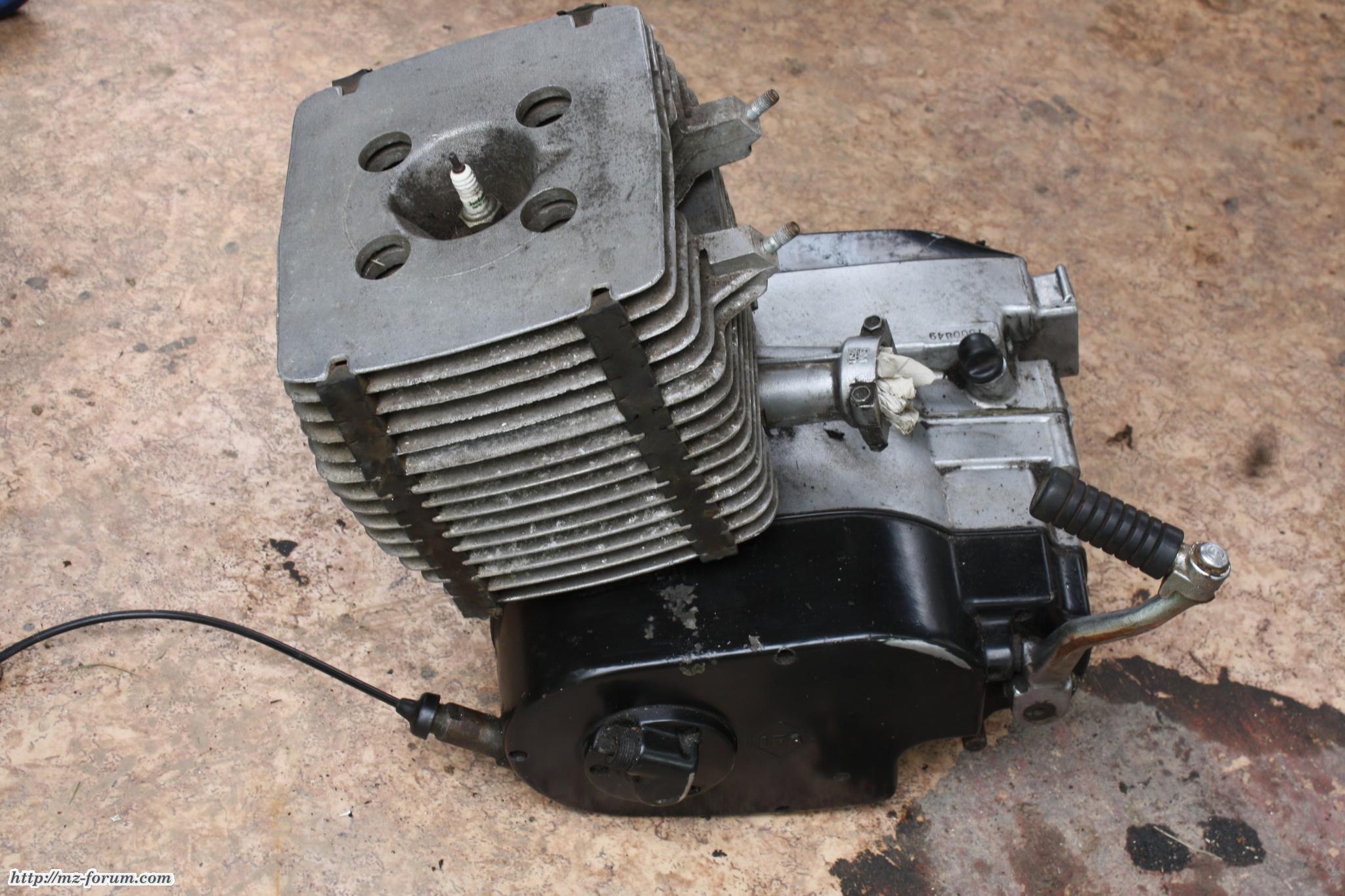 Nach einem Kettenplatzer wickelte sich die Kette um die Hinterradschwinge und zerstörte dabei auch den 2.Gang, Kugelager und Schaltgabeln