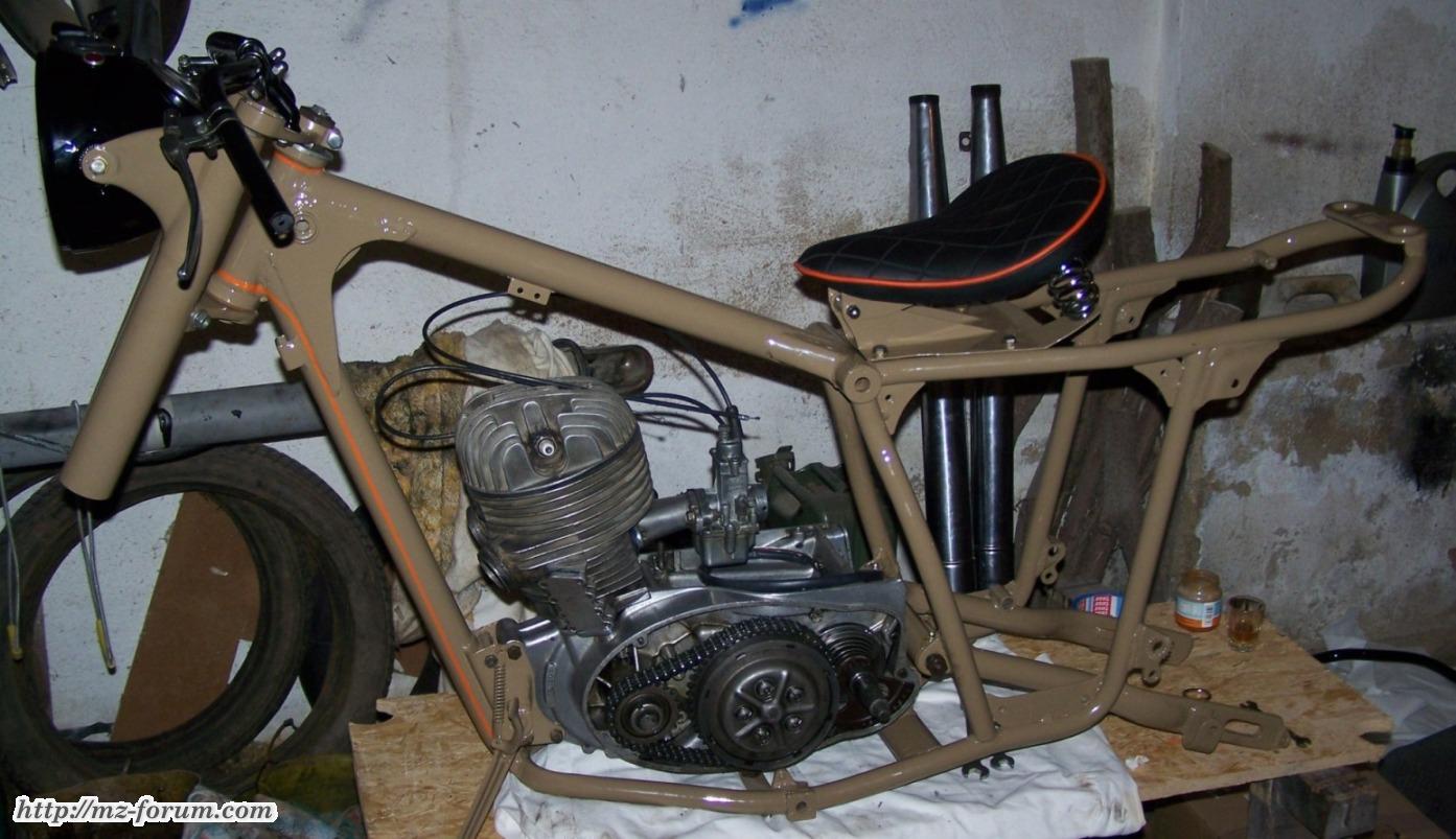 AWO, endlich fertig, nur noch Lampe ran, fast komplett, Gabel und Elektrik gemacht, Auspuff fertig, kurz nach der Hochzeit