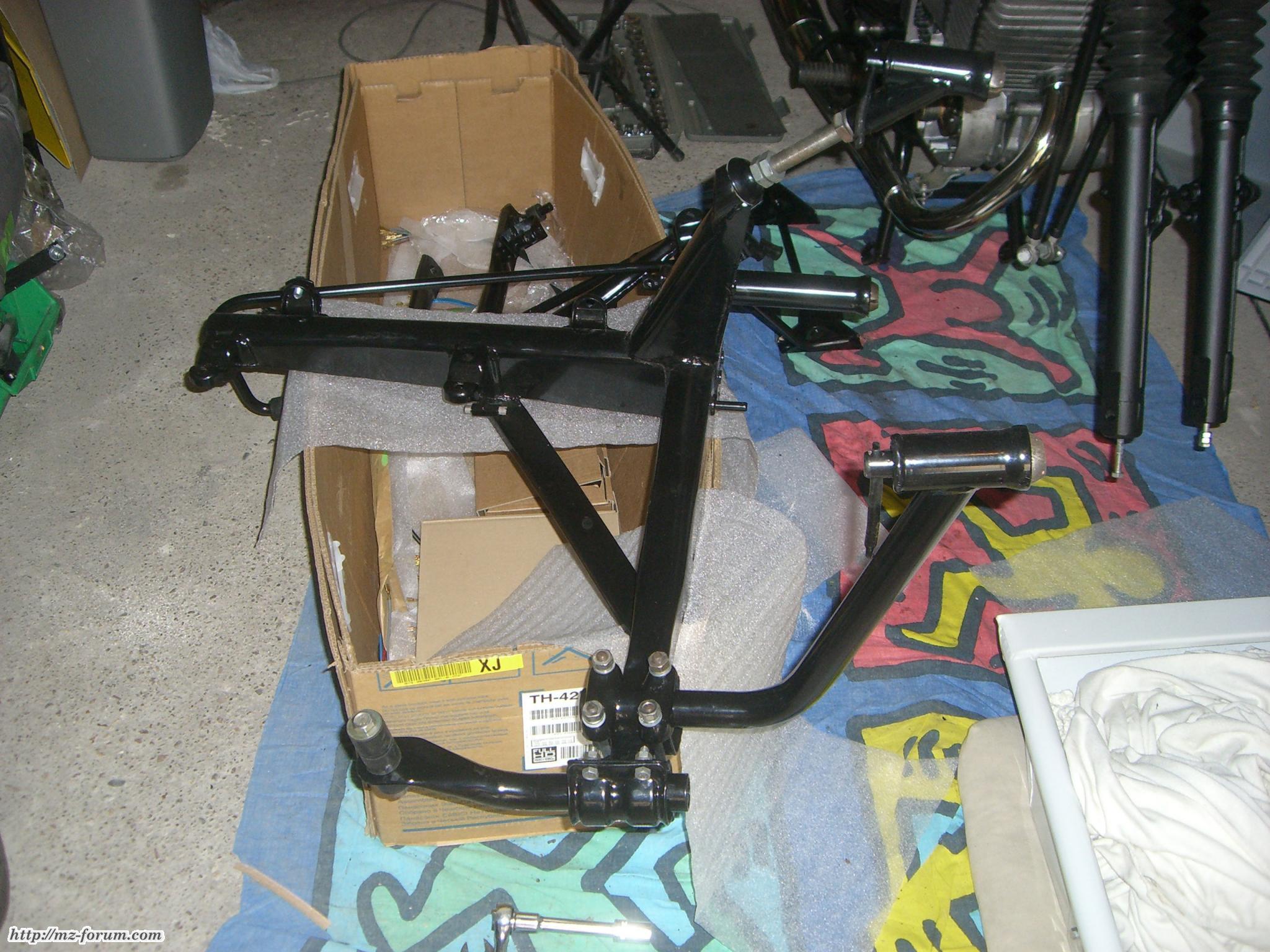 fahrbereit, fahrbereit, regenerierter Bremssattel, defekte Bremse, immer noch ein Zweirad, erstmal ein Zweirad, Beiwagenrahmen, verheiratet, erste Blechteile, erste Erfolge, frisch gepulvert, zerlegt ist schnell, zurückgeholt!