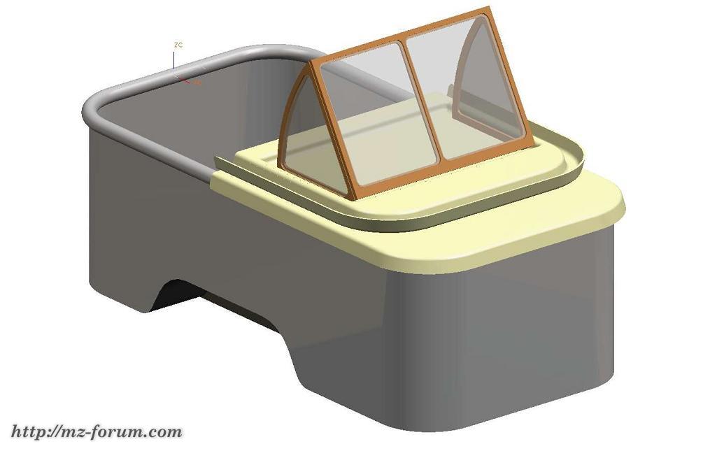 Deckel offen, Windschutzscheibe aufgestellt