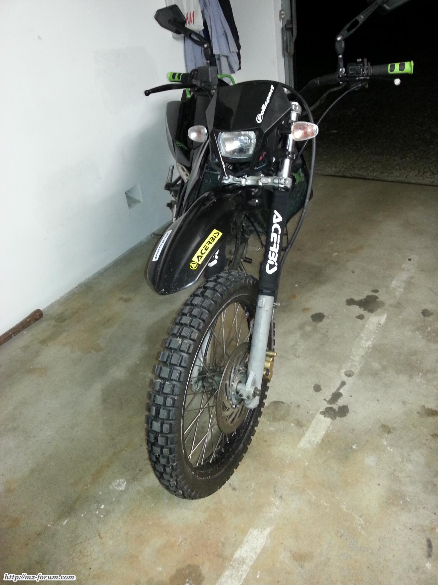 Neu sind Lichtmaske, Bremshebel, Klappbare Spiegel, Tacho, Lenker, Kotflügel. Bei der Gelegenheit haben mein Sohn und ich gleich von SM auf SX umgebaut einen einfachen DZM und einen Arrow Thunder ESD angebaut.