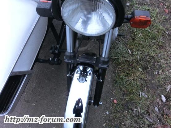 Der Kotflügel ist neu, ein ETZ250 Nachbau, ebenso der Gabelstabilisator. Die Gabel fühlt sich bei schneller Kurvenfahrt nicht mehr ganz so weich an.