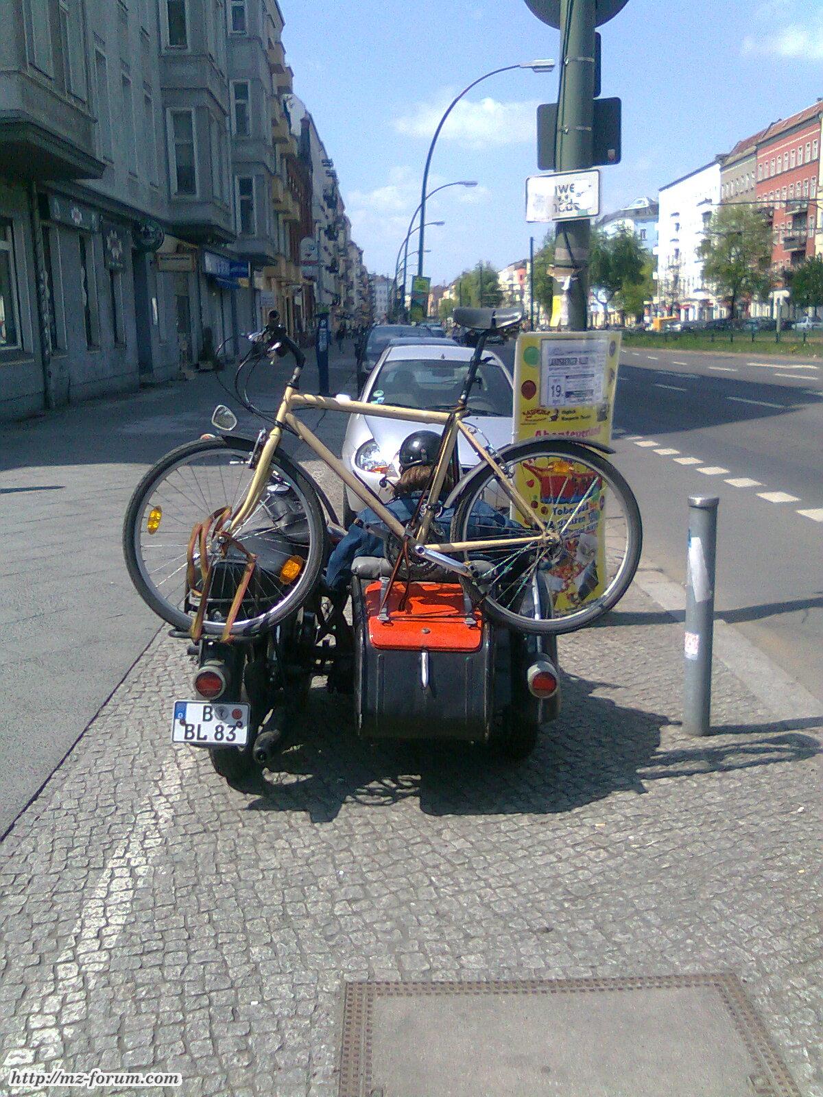 Dieser Mensch hat die Nacht durchgesoffen und konnte nicht mehr mit seinem Fahrrad nach Hause. Im Beiwagen hat er sich erstmal eine Zigarette gedreht.
