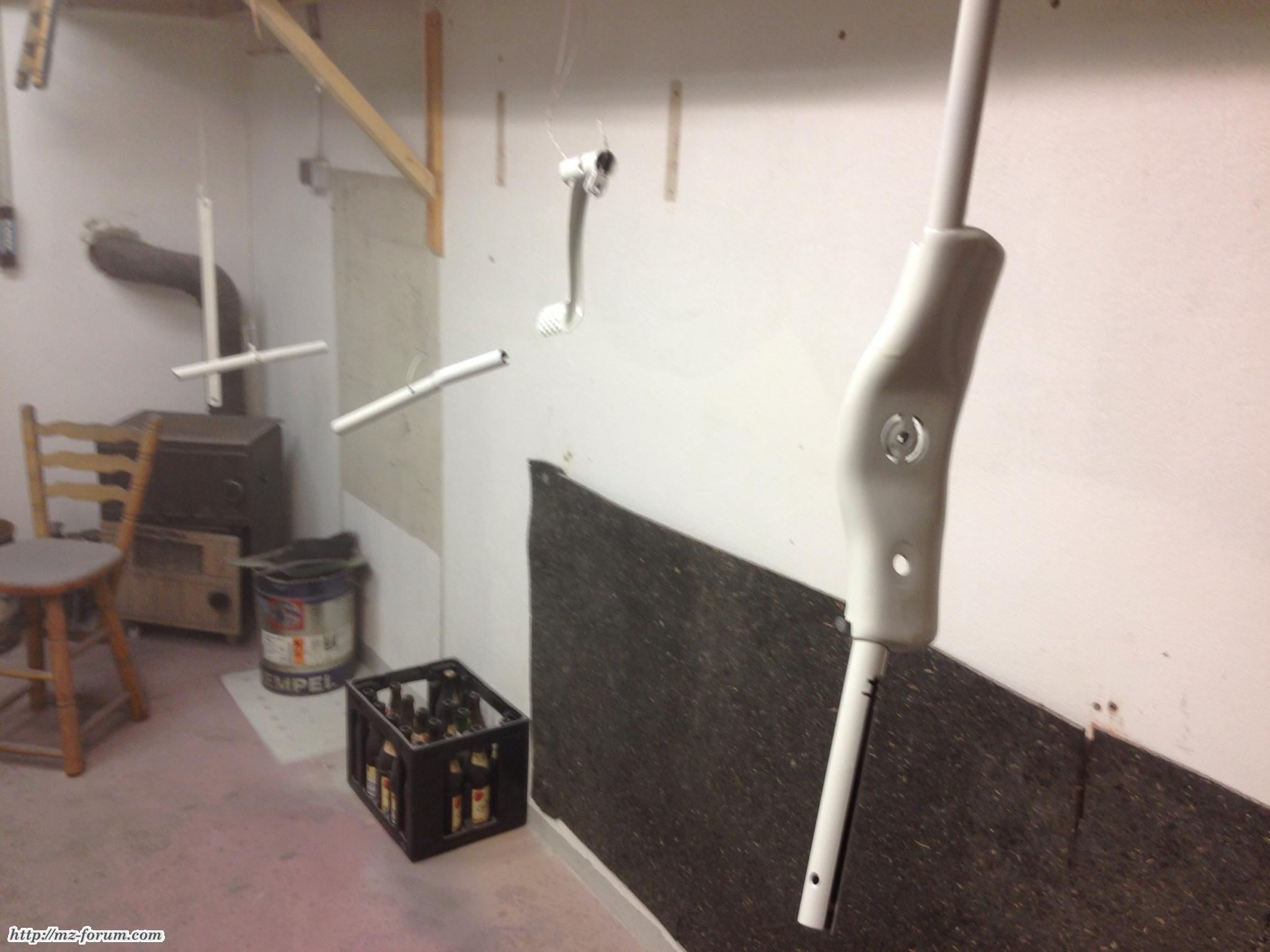 Im Bild mit dem gelackten Rahmen sieht man übrigens im Hintergrund mal den Urvater aller Kompressoren, der uns fleißig luft spendet. Is sicher schon so alt wies Schweinchen, aber macht seinen Job!