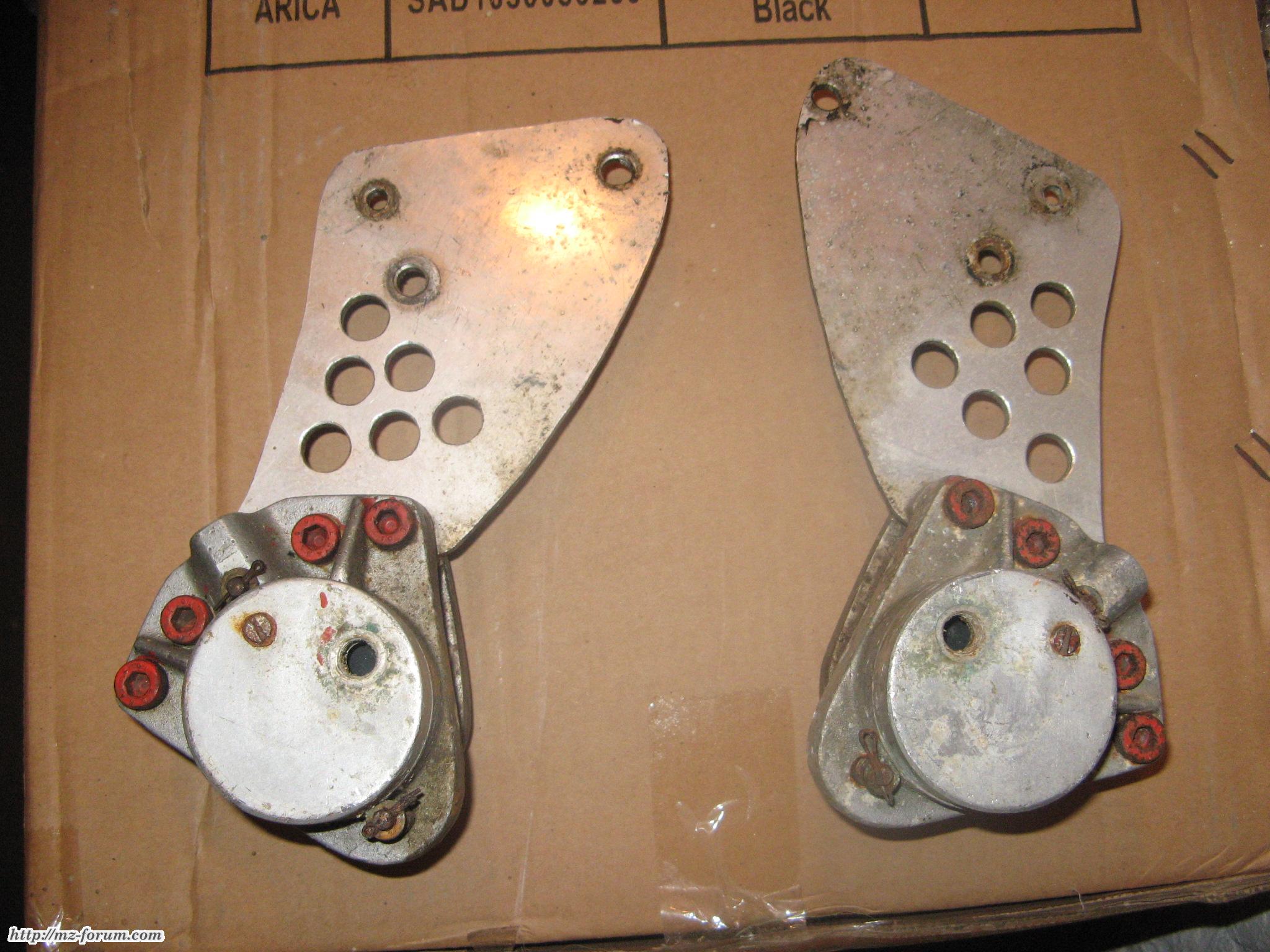 Tja und nun? Keine Ahnung. Ich nehme an, dass das Ganze nach dem Prinzip der Pendelsattelbremse oder auch Kippsattelbremse funktioniern sollte. Sowas gab es wohl mal bei BMW, allerdings sind die Sättel dort auf einer Achse gelagert, um die sie pendeln oder kippen können. Diese Aufgabe (inkl. Rückstellfunktion) sollten hier wohl die Alu-Ausleger übernehmen... anders kann ich mir 2 feste Scheiben und 2 "feste" Sättel mit jeweils nur einem Kolben nicht erklären. Im H.W.Bönsch "Einführung in die Motorradtechnik" ist das auf 2 von 200 Seiten mal kurz angerissen. Er schreibt, dass die Pendelsattelbremse ein Exot ist, sich bei BMW aber dennoch bewährt habe. Nun, durchgesetzt hat sich das ja offenbar nicht und der Herr Bönsch ist wohl auch nicht ganz unparteiisch, wenn es um BMW geht. Ich finde es zumindestens sehr interessant. Ein begnadeter Guzzi-Schrauber, dem ich davon erzählte, erinnerte sich und meinte, ich würde anders darüber denken, wenn ich mich bei 100 Sachen das erste Mal auf die Fresse lege, wenn dort irgendwas verkantet... und solle froh über die MZ-Bremse sein, die teilweise besser als die an den alten Guzzis wäre.