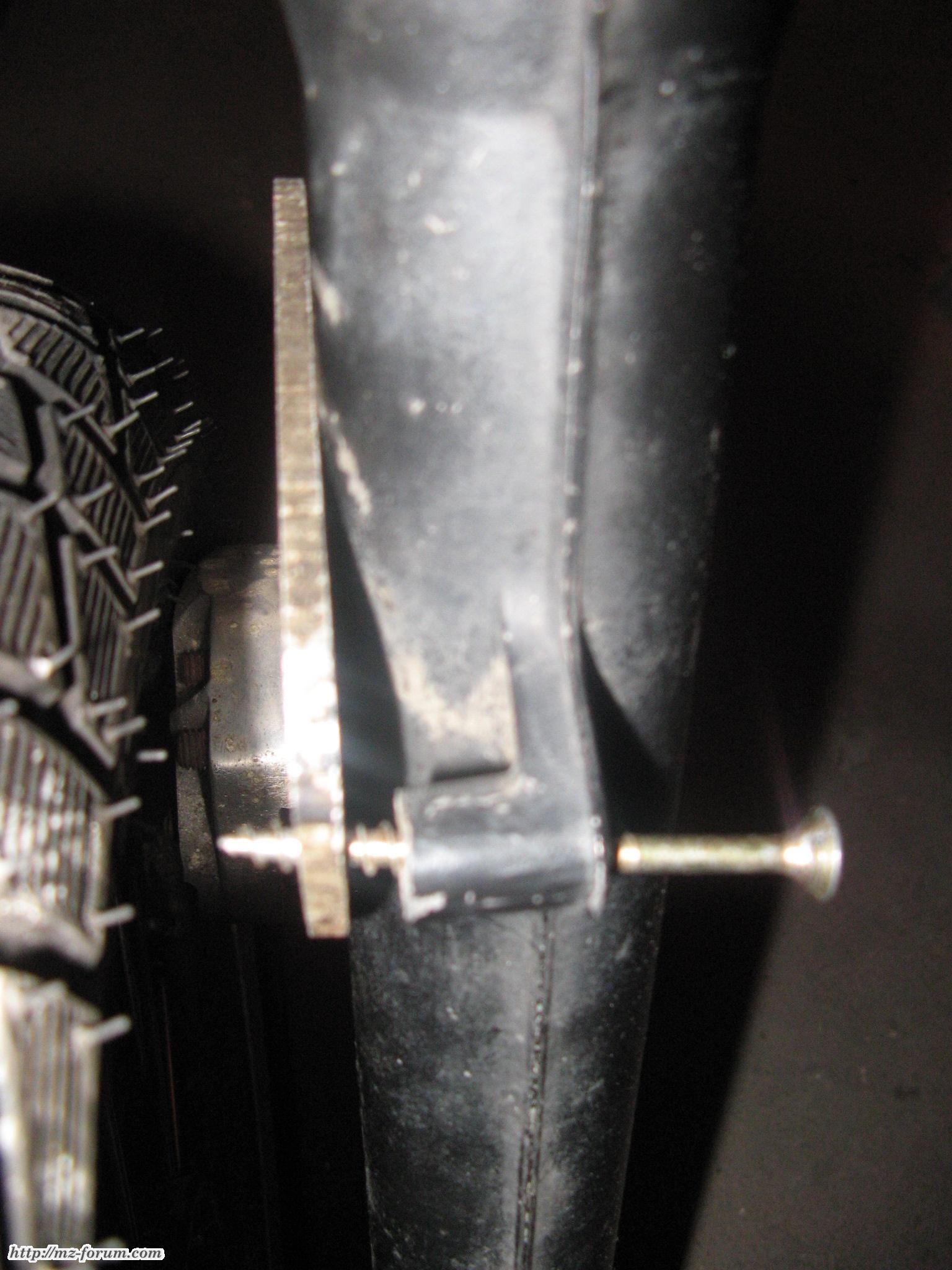 Der Abstand zur Schutzblechbefestigung müsste mit einer Distanz überbrückt werden. Ich probierte erstmal diese Bohrungen aus, aber so passt das jedenfalls nicht.